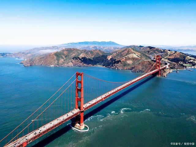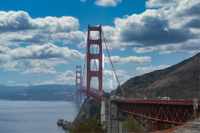 1579年,英國探險家FrancisDrake發(fā)現(xiàn)了連結太平洋和舊金山的一個海峽,這就是后來的金門。1937年,在海峽上修了這座懸索橋。金門大橋橫跨南北,將舊金山市與Marin縣連結起來?;ㄙM四年多時間修建。它已不是世界上比較長的懸索橋,但它卻是比較著名的。金門大橋的巨大橋塔高227米,每根鋼索重6412公噸,由27000根鋼絲絞成。