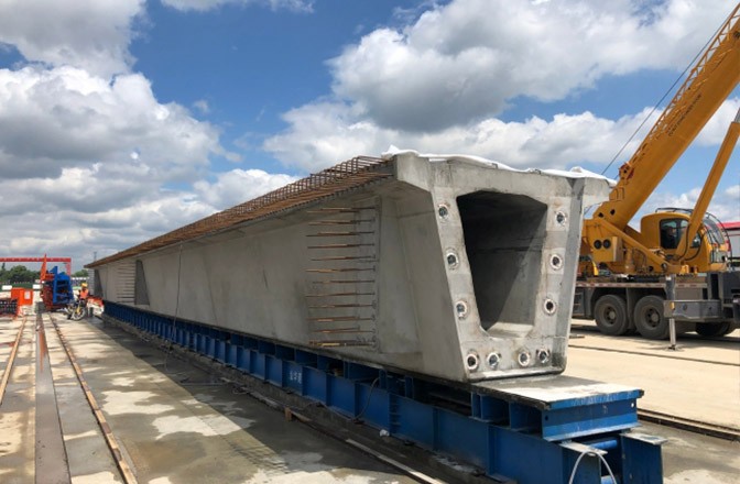 預(yù)制箱梁模板具有精度高、結(jié)構(gòu)簡單、整體縮放自如、脫模容易、操作簡單,可以整體吊裝或拖拉到制梁臺位上,待預(yù)制混凝土達(dá)到脫模強(qiáng)度后整體或反段脫模,將內(nèi)模拖拉出已預(yù)制成型的箱梁內(nèi)腔,操作人員安裝及調(diào)試方便,勞動(dòng)強(qiáng)度低,生產(chǎn)。